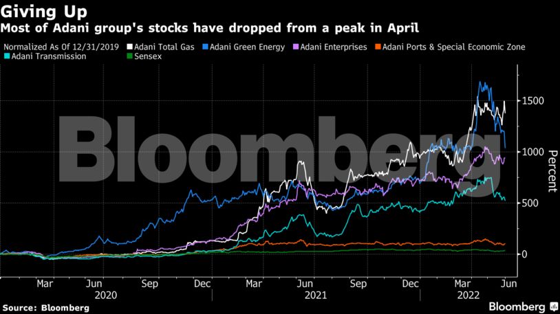 Adani Green Energy Ltd., the group's biggest firm by market value, led the rout, plunging a record 12% in trading volume about nine times the average of the past three months. Adani Total Gas Ltd. Adani Transmission Ltd. and Adani Power Ltd. fell by at least 5% each.