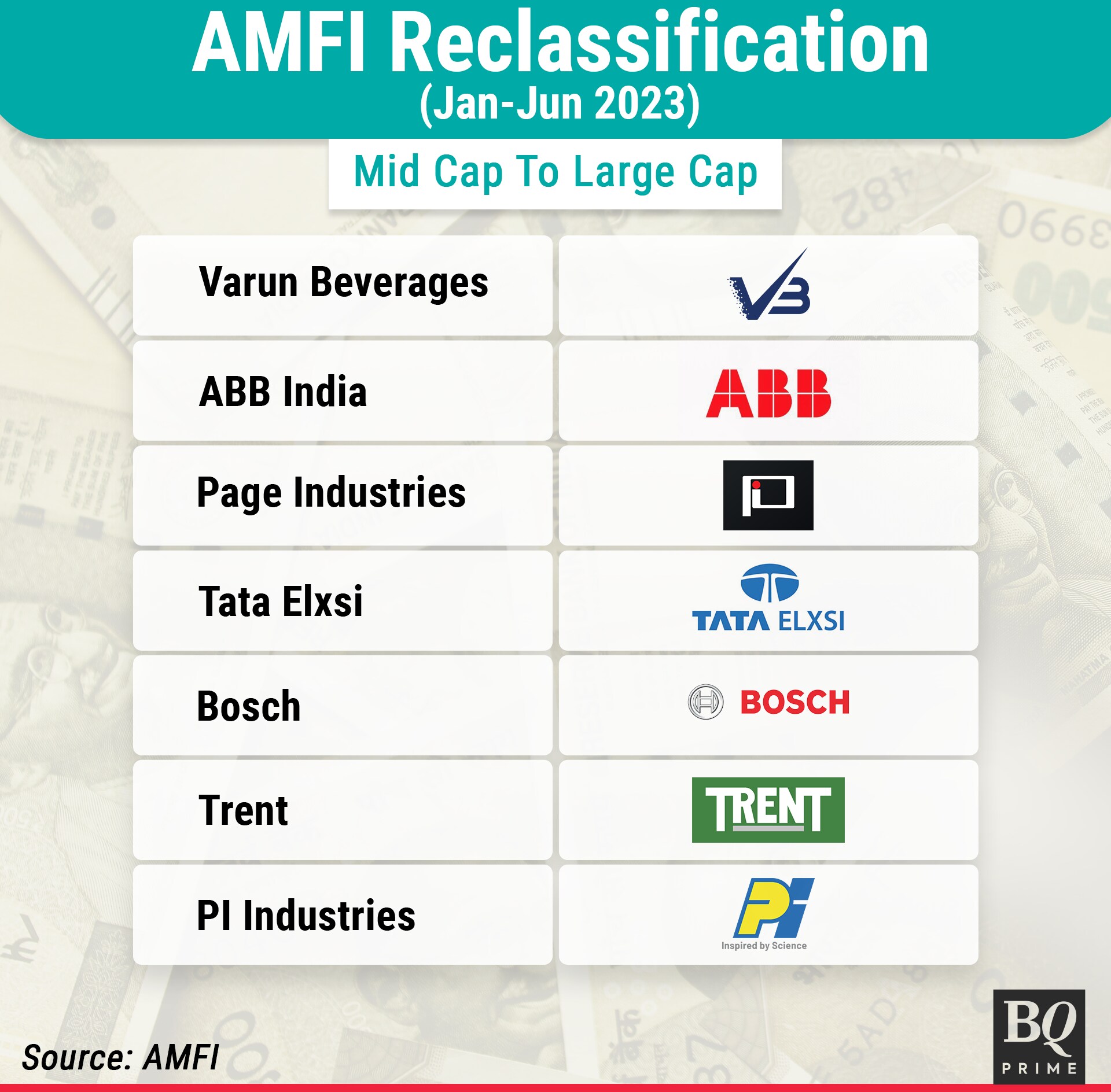 ABB India Ltd., Bosch Ltd., Trent Ltd. and PI Industries Ltd. also moved up the ranks and are now classified as large caps by the Association of Mutual Funds in India. The changes will become the benchmark for equity-oriented schemes in the first half of 2023.