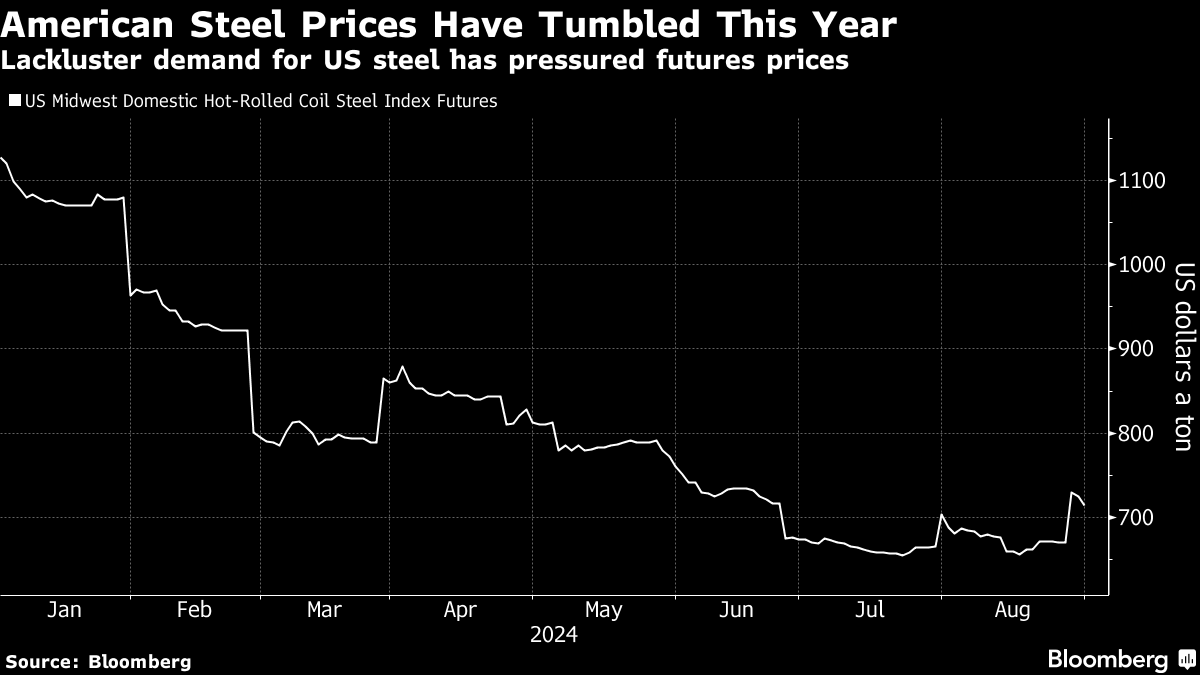Benchmark US steel futures are down 37% since the start of the year and earlier in the summer hit the lowest levels since December 2022.