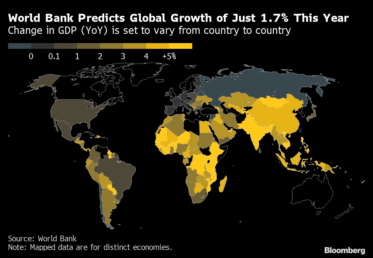 The World Bank slashed its growth forecasts for most countries and regions, and warned that new adverse shocks could tip the global economy into a recession.