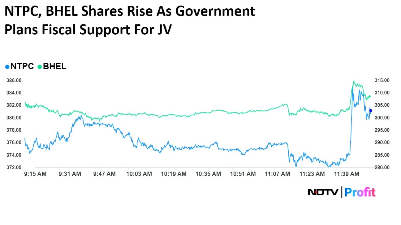 Shares of NTPC Ltd. and Bharat Heavy Electricals Ltd. rose on Tuesday after Finance Minister Nirmala Sitharaman announced that India was forming a joint venture between the companies to set up an 800 megawatt commercial plant during the 2024 Budget Speech.