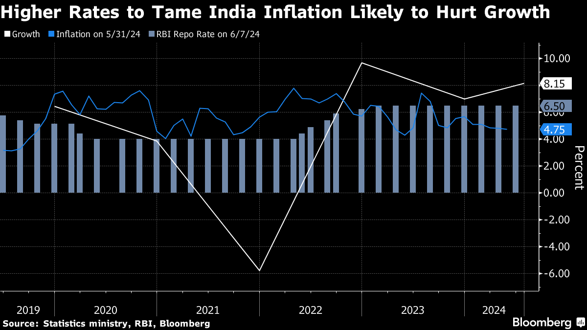 Economists surveyed by Bloomberg predict the RBI will lower rates in the final quarter of 2024. The next rate decision is on Aug. 8.