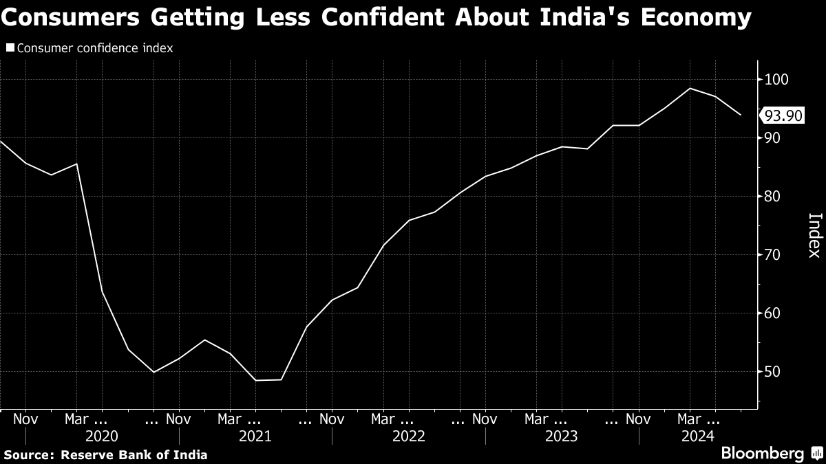 With private consumption making up about 57%-58% of gross domestic product, the drop in consumer confidence “warrants close monitoring,” said Deutsche's Das. Global growth risks have “risen considerably,” he said, and the RBI must “fine tune the monetary policy decision accordingly.”
