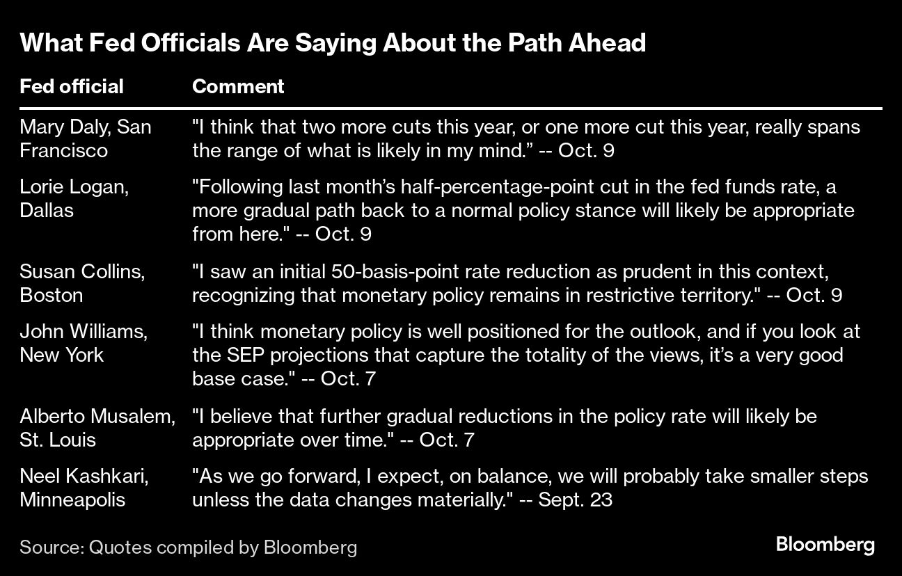The Atlanta Fed's GDP tracker now estimates the economy grew at an annualized rate of 3.2% in the third quarter. Some Fed officials are already noting that their preference is to move more slowly for now.