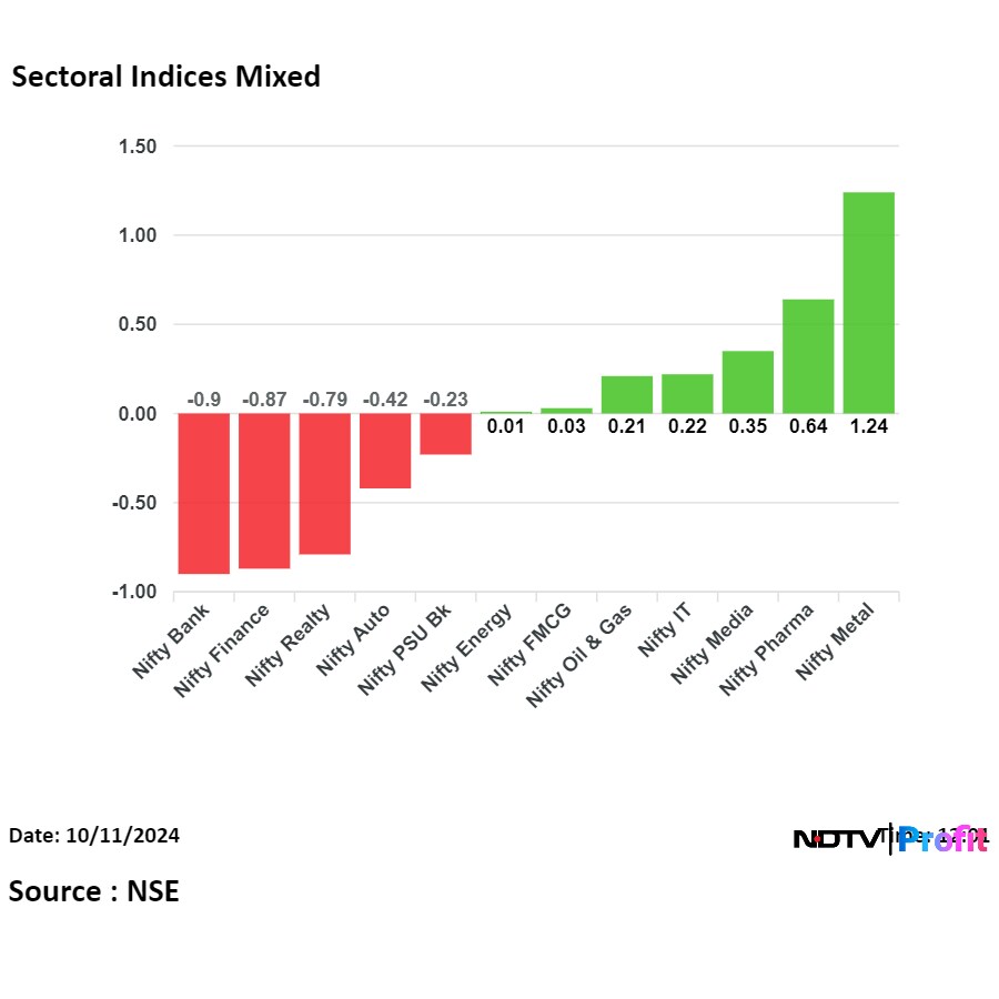 Sectoral indices were mixed with Nifty Metal rising the most while Nifty Bank was the top loser.