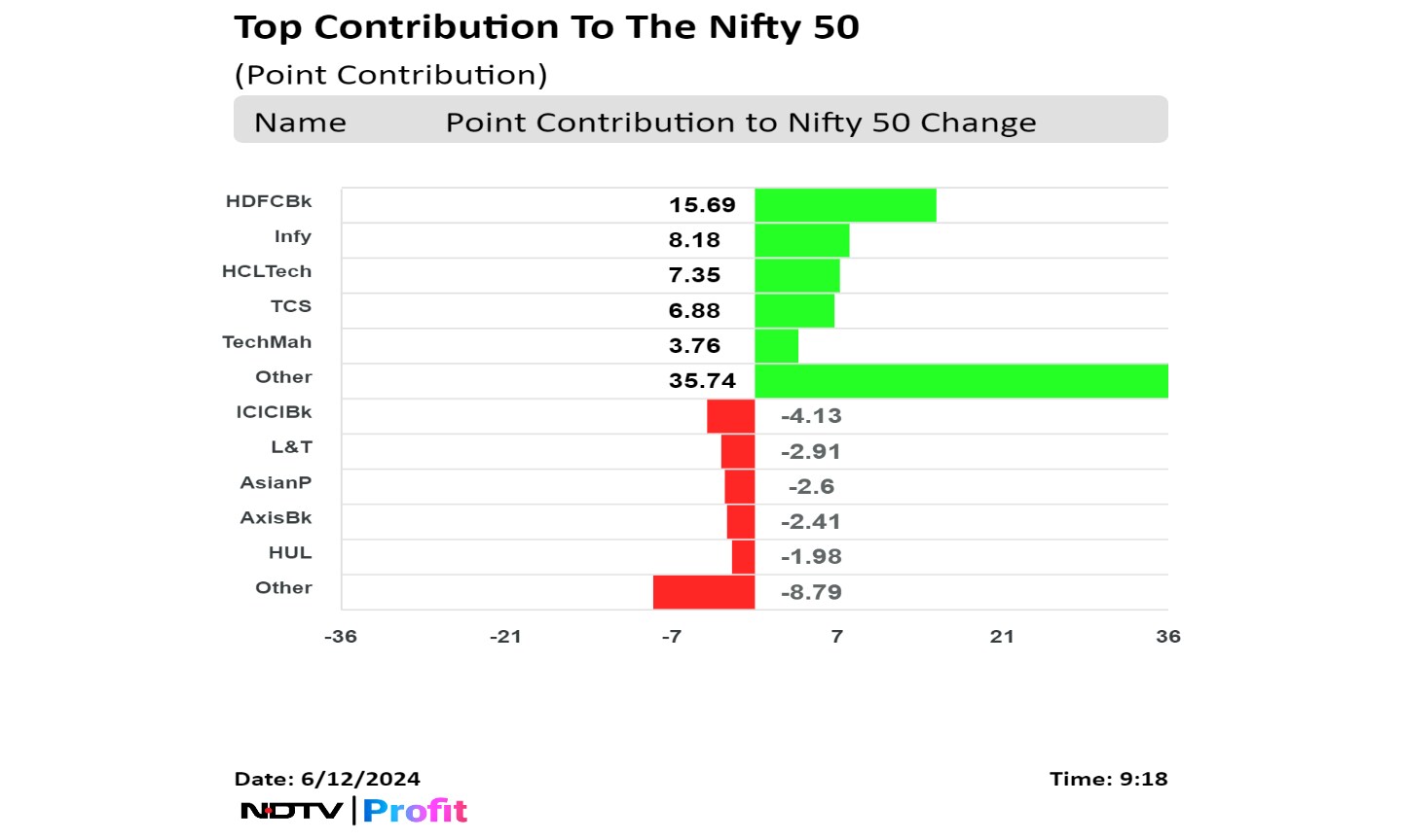 HDFC Bank Ltd., Reliance Industries Ltd., Bharti Airtel Ltd., Larsen & Toubro Ltd., and ICICI Bank Ltd. supported the benchmark's upward movement.