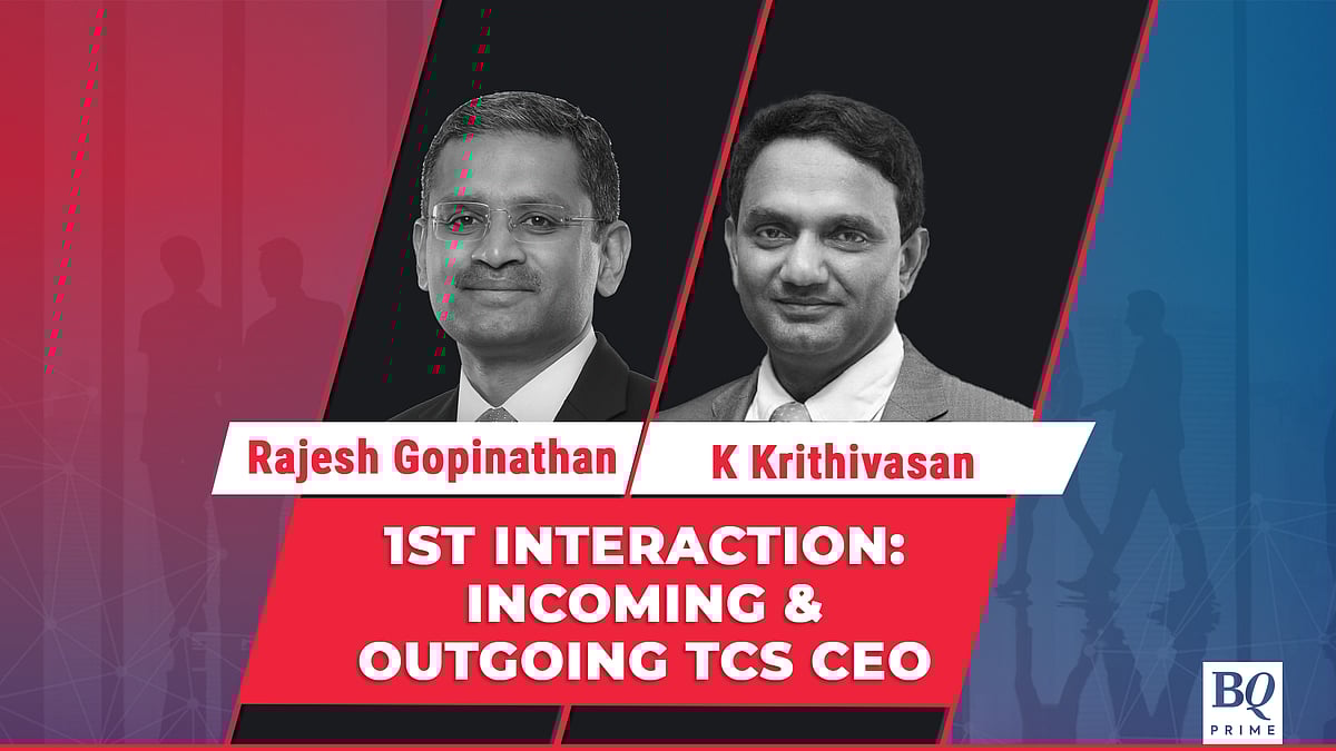 #TCS' outgoing and incoming CEOs, Rajesh Gopinathan and K Krithivasan, address the media. #BQLive