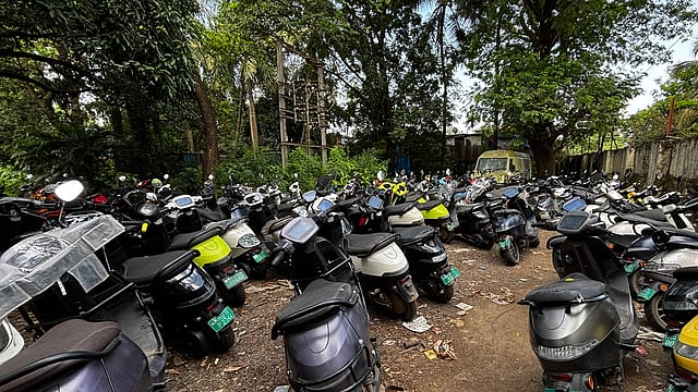 Hundreds of Ola Electric scooters awaiting service and repairs at a stockyard in Thane. (Photo: Tushar Deep Singh/NDTV Profit)