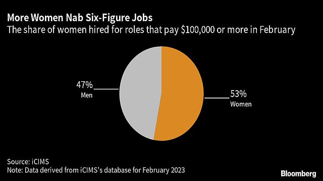 (Bloomberg) -- Fewer women than men apply for jobs that pay an annual salary of $100,000 or more — but those who do are more likely to get hired than their male counterparts, according to fresh data from recruiting software company iCIMS.