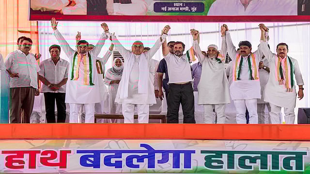 Wooing voters with promises, the Congress announced seven guarantees, including the promises of a legal guarantee for MSP, a caste survey, and Rs 2,000 per month to women if voted to power.