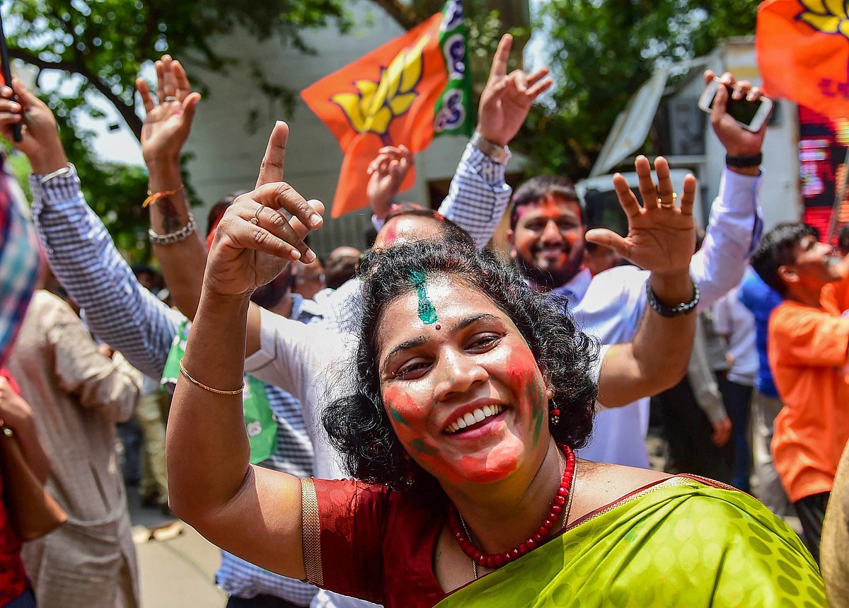 While the BJP has the most seats, the Congress has a higher vote share. That means, more people voted for the Congress party, but in the First Past the Post system, the BJP has taken the lead.