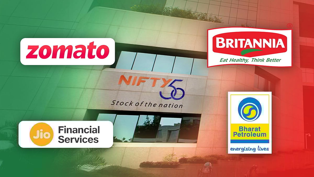 The semi-annual rejig in the Nifty 50 is likely to cause major capital inflows in new entrants Zomato Ltd. and Jio Financial Services Ltd., while pulling money out of Britannia Industries Ltd. and Bharat Petroleum Corp.