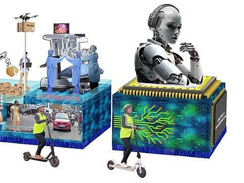 Ground elements: Female students using battery scooters will traverse through the Kartavya Path, depicting the empowerment of women through the Digital India Programme
