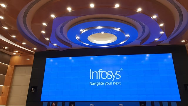 Shares of Infosys slipped over 3.2% on Thursday to touch an intraday low of Rs 1,563.65 apiece on the NSE. As of 12:25 p.m., the stock was seen trading 1.30% lower at Rs 1,595 apiece on the NSE in comparison to the benchmark Nifty 50's rise of 0.80% at 23,375.25 points.