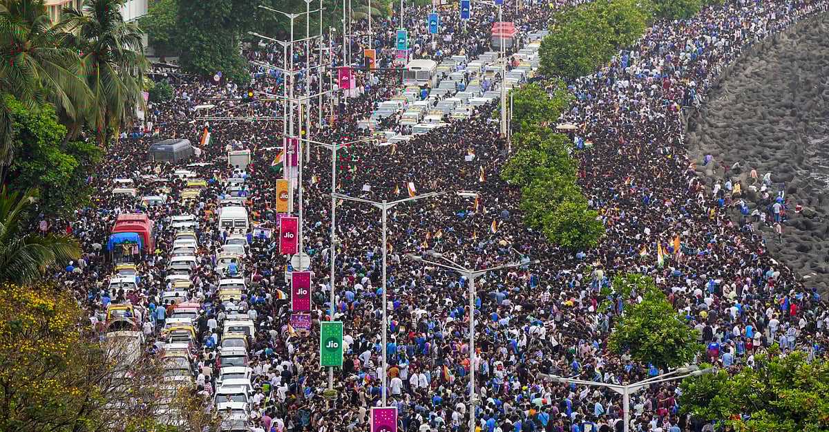 The itinerary for the parade included a two-hour open bus journey from the National Centre for the Performing Arts (NCPA) in Nariman Point to the Wankhede Stadium.