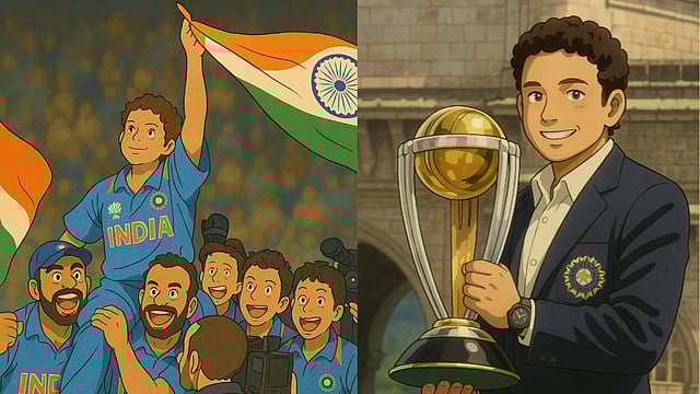 Cricket legend Sachin Tendulkar was not to be left behind. He shared a recreation of India’s historic 2011 ICC World Cup win. He shared two images — one showing his teammates carrying him on their shoulders in celebration and another of him proudly holding the World Cup. His caption was, “AI-sa kuch trend ho raha hai, maine suna. Toh socha ("I heard there’s an AI trend going on, so I thought), what if Ghibli made cricket?”