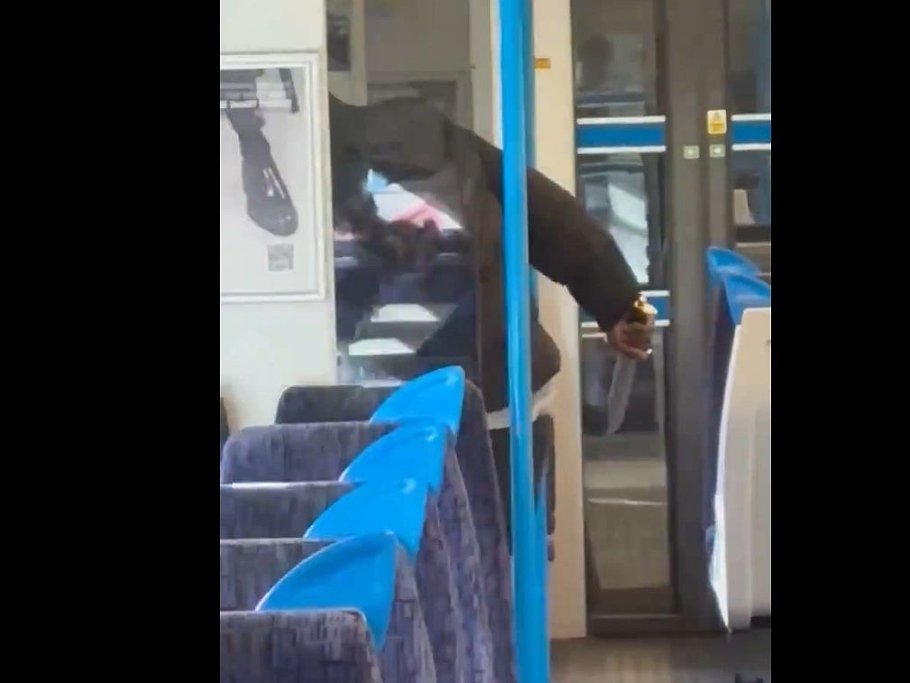 A panicked passenger is heard shouting, "F****** Stop it now!" before contacting the authorities to report the incident, stating, "This man is stabbing someone on the train."