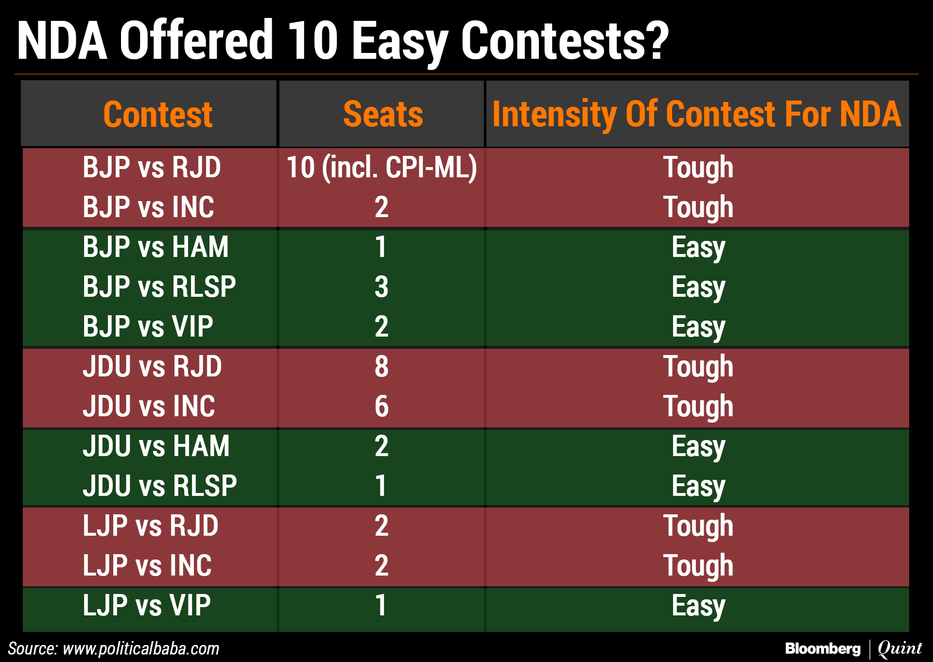 Similarly for the NDA, the four where LJP is contesting, most against RJD, will be tough.