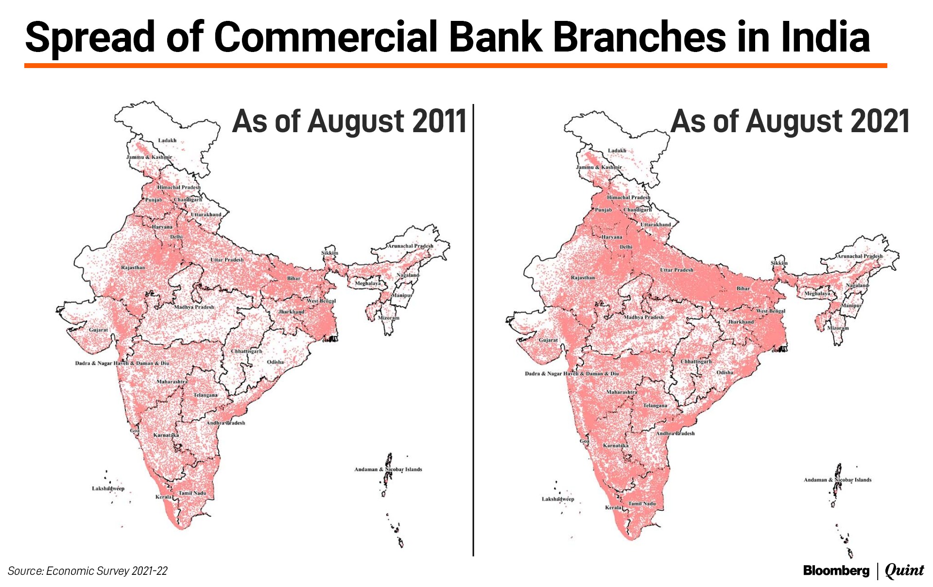 The survey also shows the extent of physical as well as financial infrastructure development in India.