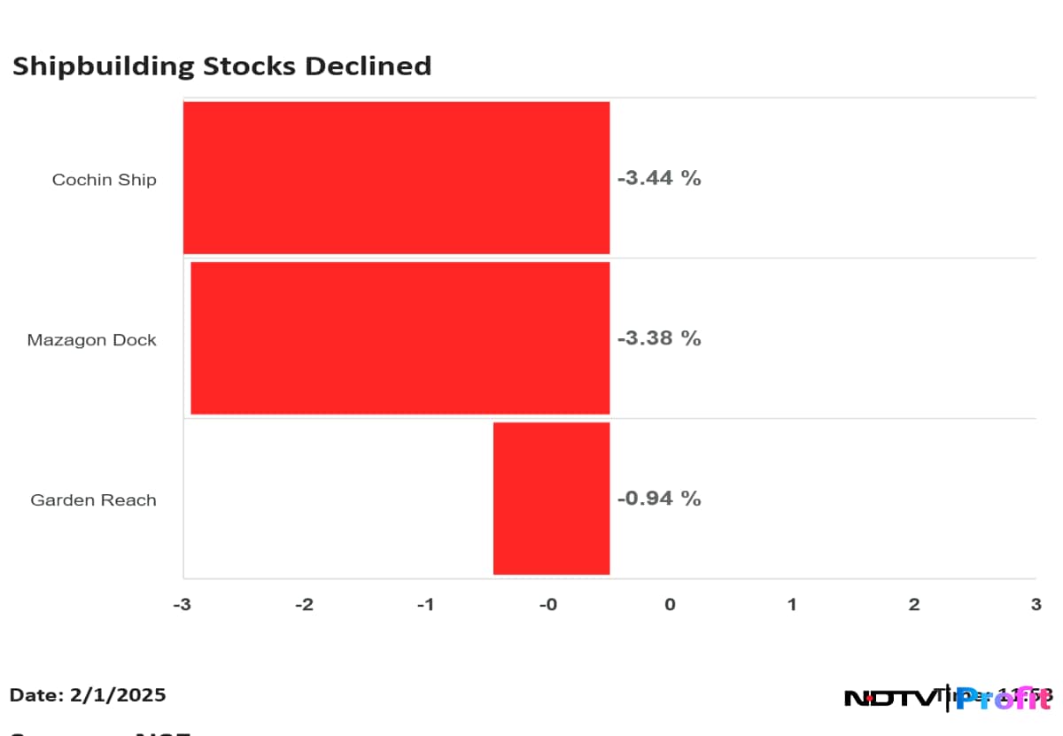 Shares of Mazagon Dock Shipbuilders Ltd., Cochin Shipyard Ltd., Garden Reach Shipbuilders & Engineers Ltd. and other shipbuilding companies advanced momentarily before declining on Saturday. The development came as the government announced a Rs 25,000-crore Maritime Development Fund to be set up during Union Budget 2025–26.