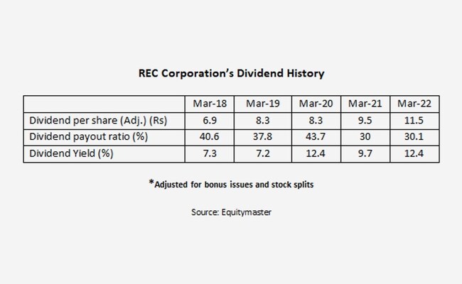 For the financial year 2022-2023, REC has declared two interim dividends, resulting in a total dividend payout of Rs 8.5 per share, including the second interim dividend.