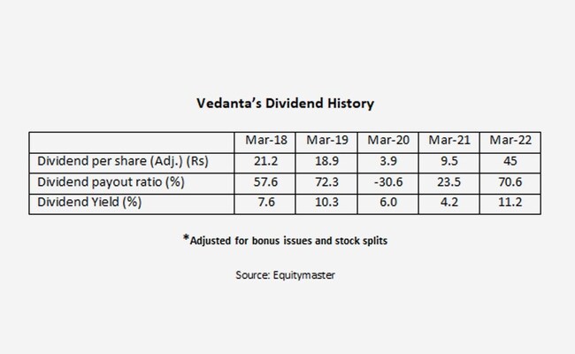For the financial year 2022-2023, Vedanta has declared five interim dividends.
