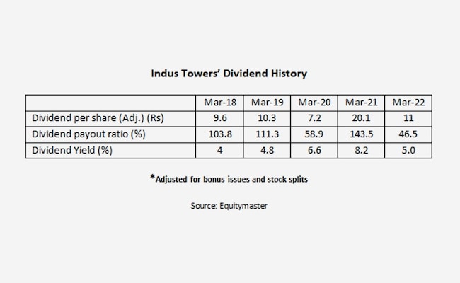 For the financial year 2022-2023, Indus Towers has declared one dividend of Rs 11.