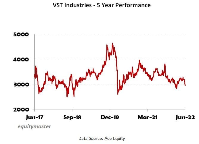 VST Industries Ltd was incorporated in 1930 under the name Vazir Sultan Tobacco Company.
