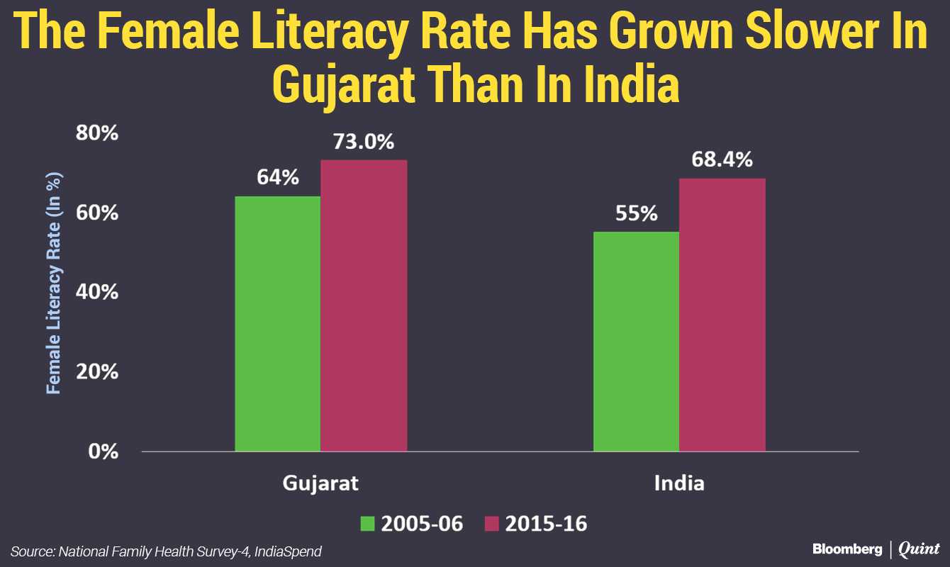 The literacy rate among women in Gujarat has remained higher than India over 10 years. However, India has shown a faster growth in its female literacy rate.