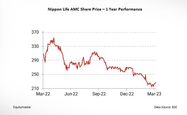 In the last one year, shares of Nippon Life India Asset Management have fallen by 26% due to market volatility.