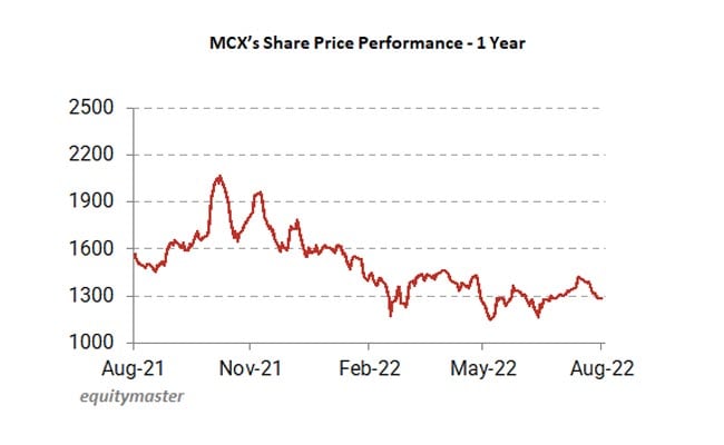 MCX is currently trading at a low of 40 per cent from its 52-week high of Rs 2,135.