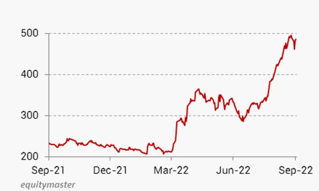 It is currently trading 5 per cent away from its 52-week high of Rs 510.