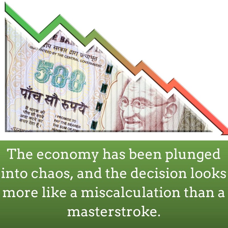If this points to an appalling lack of elementary planning on the part of the government, the broader consequences are far worse. The economy has been plunged into chaos, and the decision looks more like a miscalculation than a masterstroke.