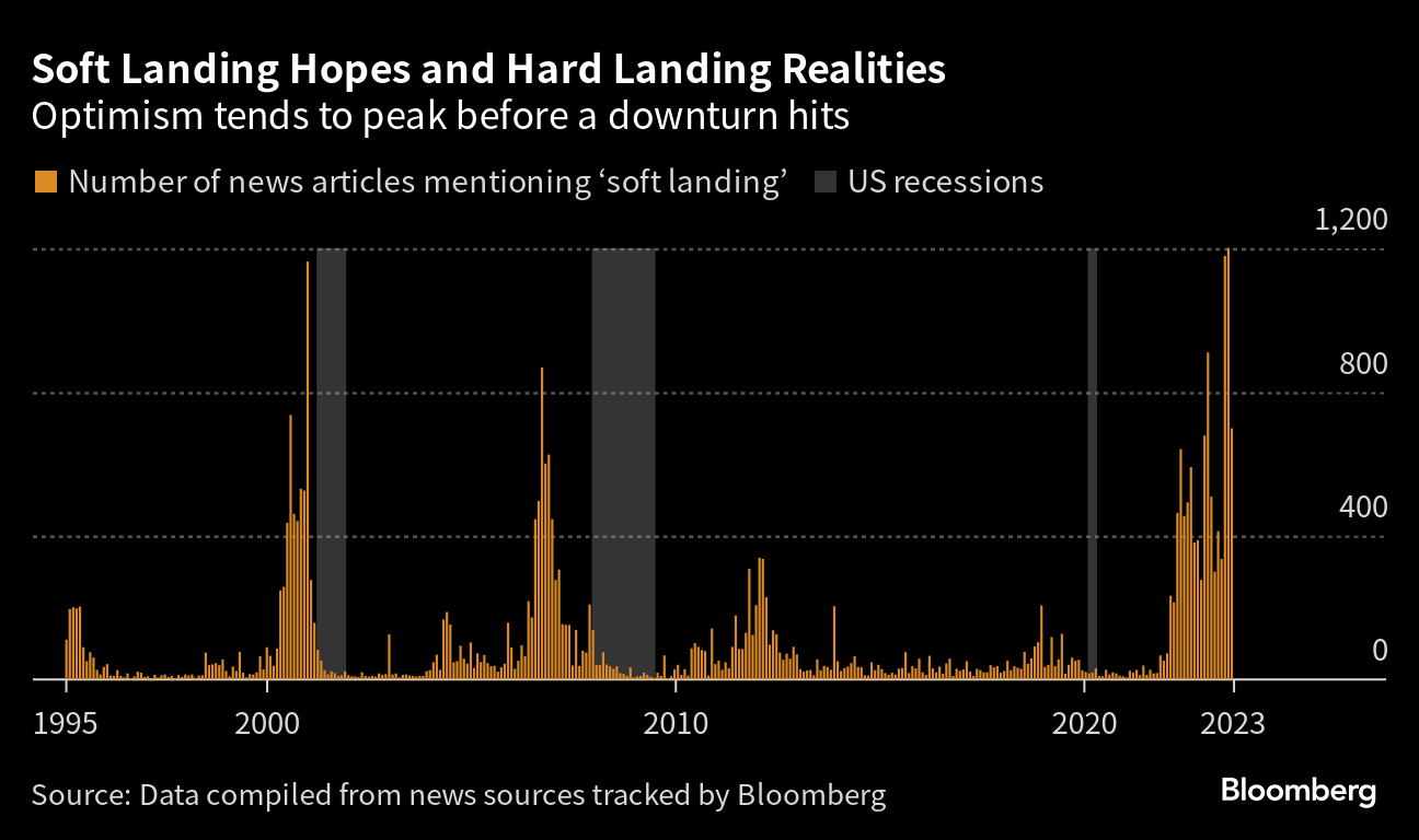 (Bloomberg) -- When everyone expects a soft landing, brace for impact. That's the lesson of recent economic history — and it's an uncomfortable one for the US right now.