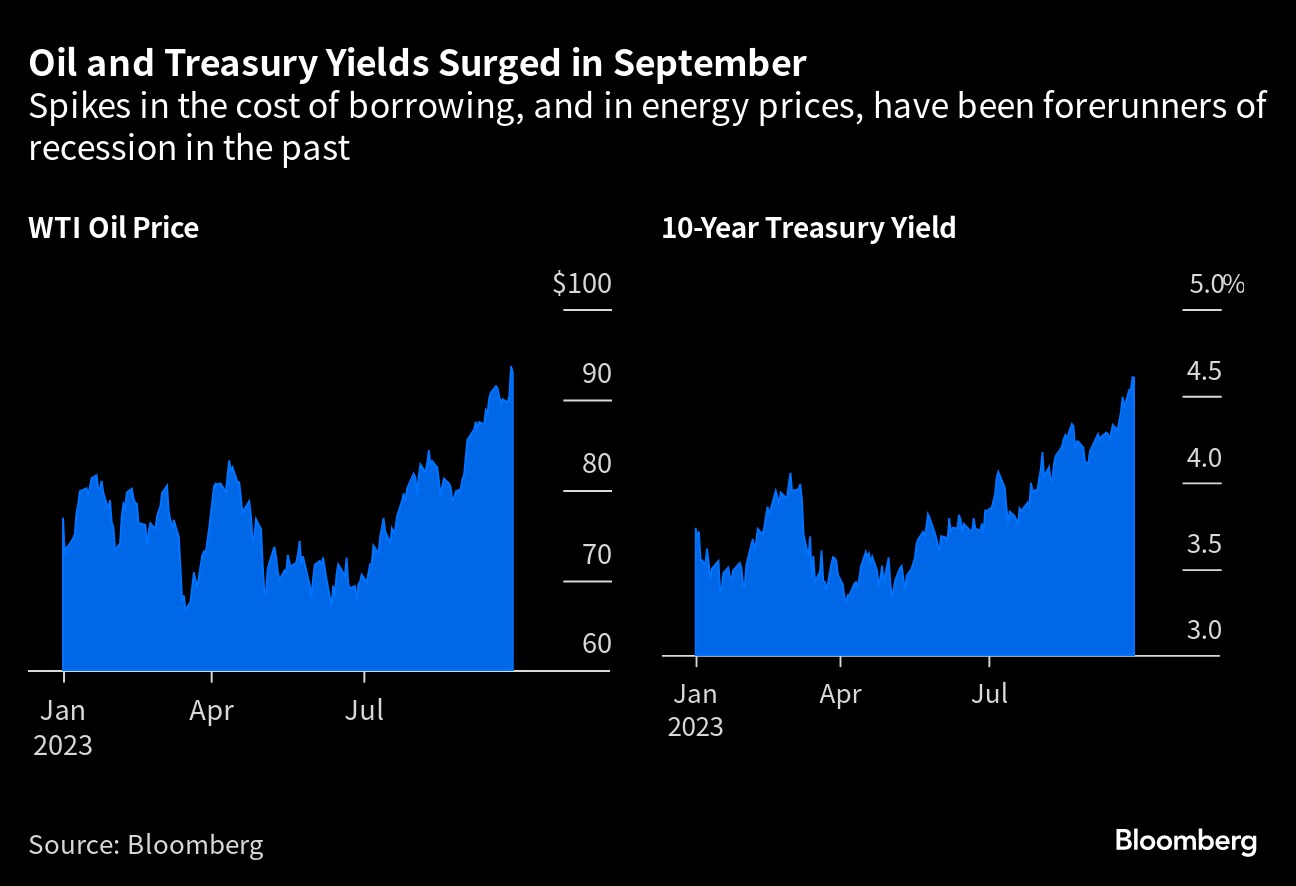 - Oil Spike: A surge in crude prices — hitting every household in the pocket book — is one of the handful of truly reliable indicators that a downturn is coming. Oil prices have climbed nearly $25 from their summer lows, pushing above $95 a barrel.
