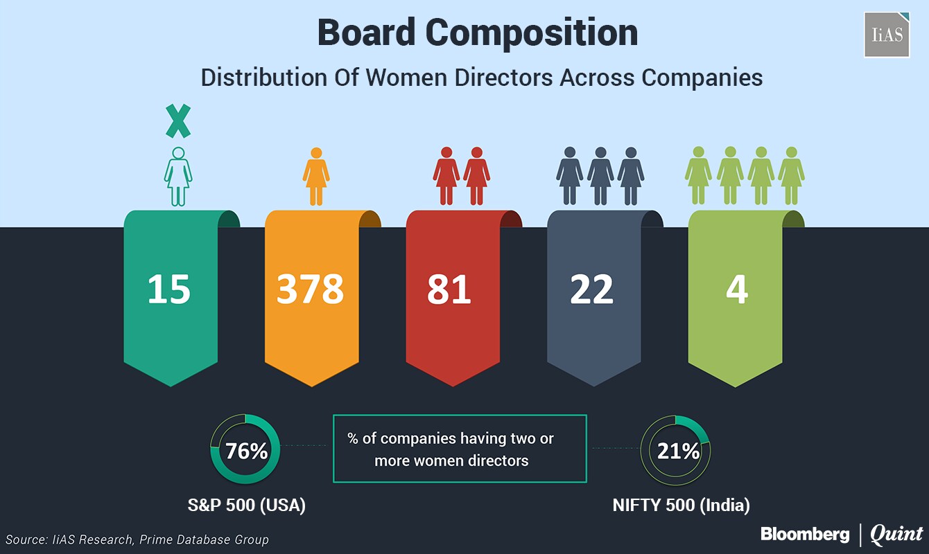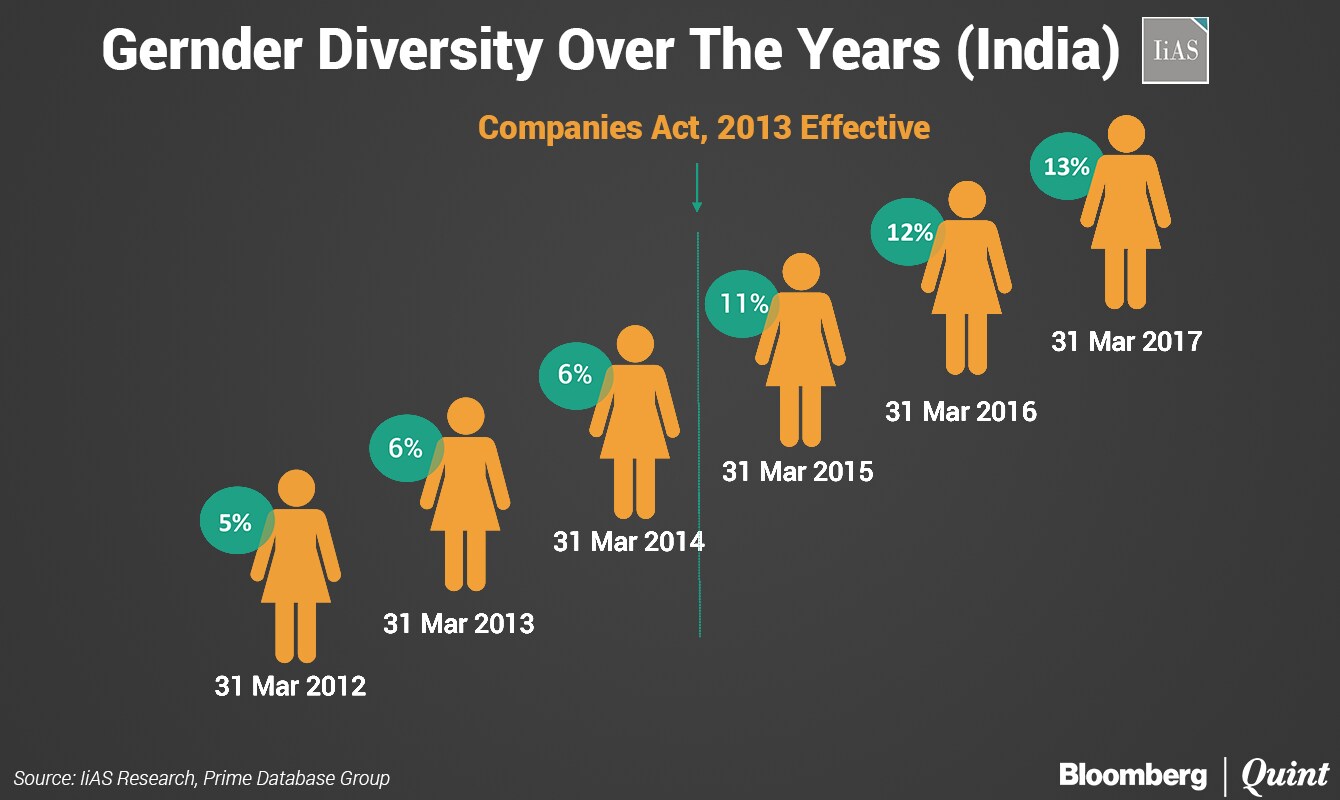 Female representation in Nifty 500 companies more than doubled to 13 percent in the five years to March, found the study conducted by Institutional Investor Advisory Services (IiAS), along with Prime Database Group and Women on Corporate Boards Mentorship Program. However, it is much lower than countries like Norway where 39 percent of board members are women, France (34 percent), the United Kingdom (23 percent) and the U.S (21 percent).