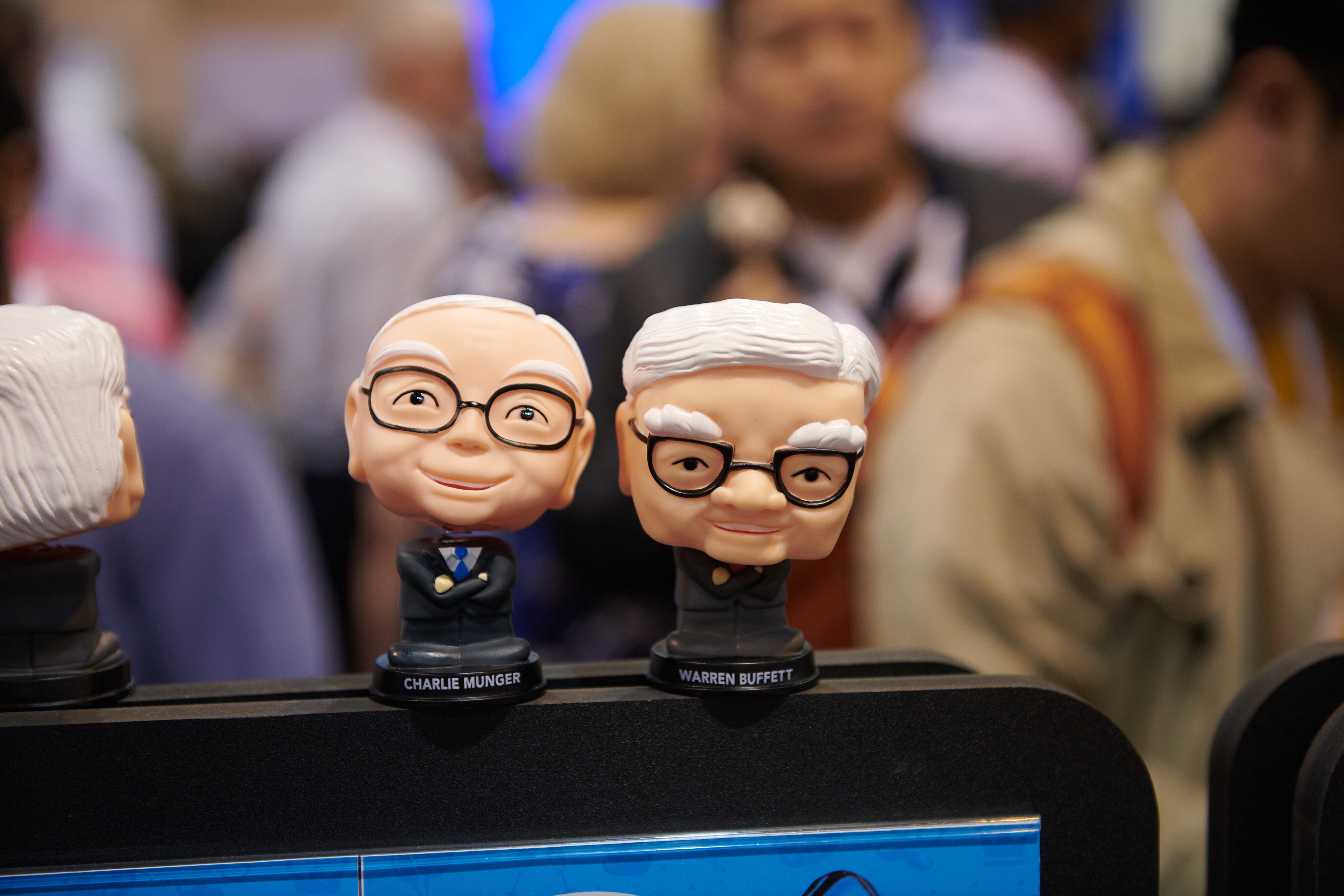 Bobbleheads depicting the late Charlie Munger and Warren Buffet ahead of the Berkshire Hathaway annual shareholders meeting in Omaha on May 3.