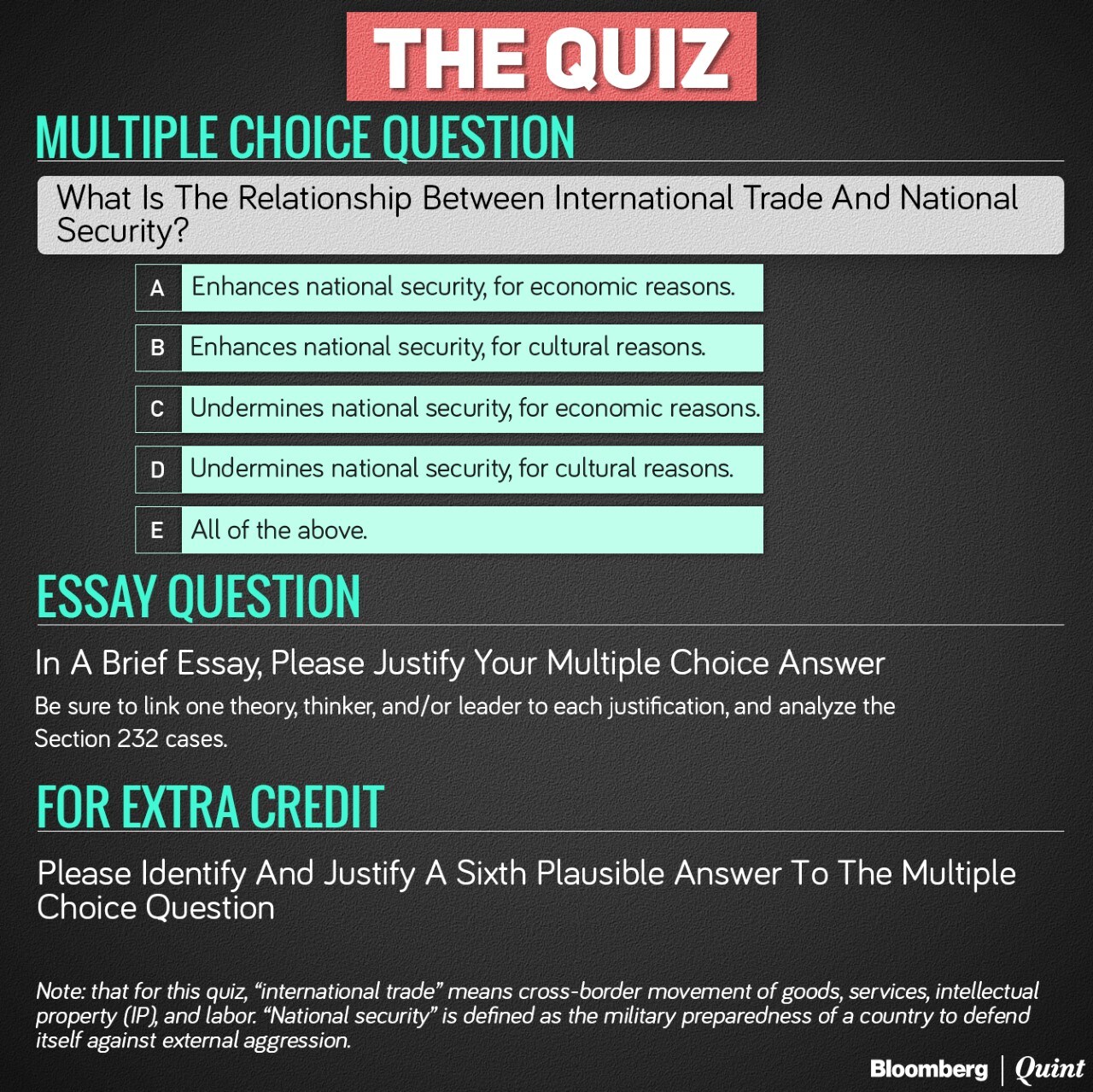 Third, President Trump and the Section 232 investigations justify answer C (undermines national security, for economic reasons).