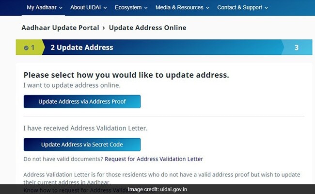 The user can update the address online by submitting valid documents or an address validation letter (for those without documents), according to the UIDAI protal. The Aadhaar holder can access the service by selecting the "update your address online" option on the UIDAI portal.