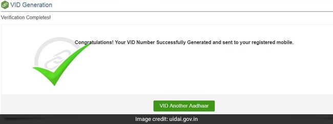 On completion of the process, the VID is sent to the registered mobile number.