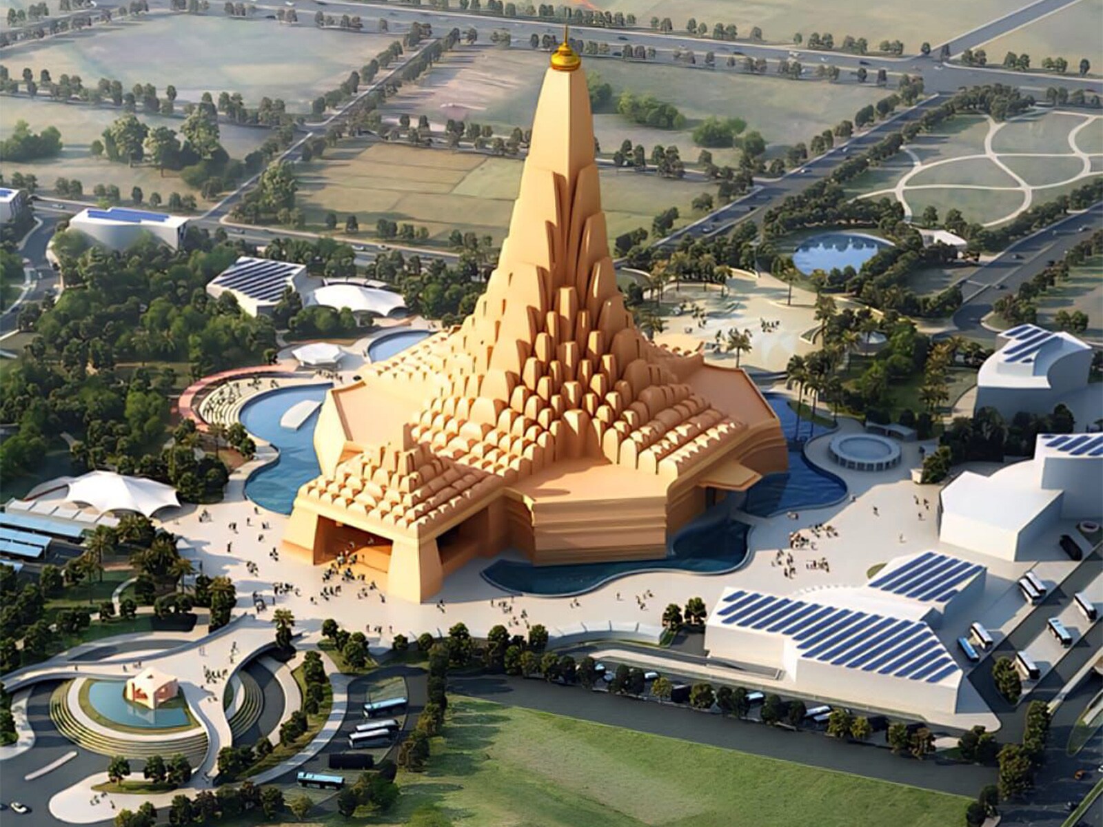 Over 600 workers and technical experts worked in shifts over three days to ensure a continuous pour without any cold joints, maintaining the structural integrity of the foundation. The foundation itself measures an impressive 450 feet by 400 feet with a depth of 8 feet and is designed to support 1,551 Dharma Stambhs for the 504-foot-tall Jagat Janani Maa Umiya Temple.