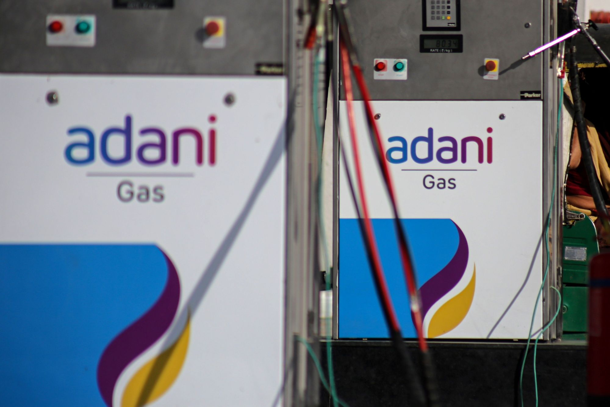 Signage of Adani Group gas station in Ahmedabad, India, on Wednesday, Feb. 1, 2023. Bonds of the Indian billionaire’s flagship firm plunged to distressed levels in US trading, and the company abruptly pulled a record domestic stock offering after the Adani group suffered a $92 billion market crash. Photographer: Dhiraj Singh/Bloomberg