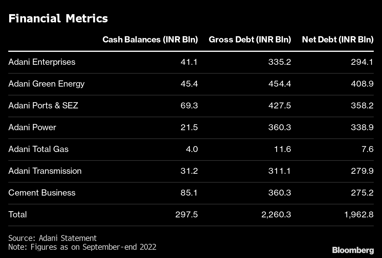 This isn't the first time the debt load of Adani's firms has faced scrutiny. In August, CreditSights, a Fitch Group unit, described the conglomerate — whose businesses span ports to electricity — as “deeply overleveraged.”