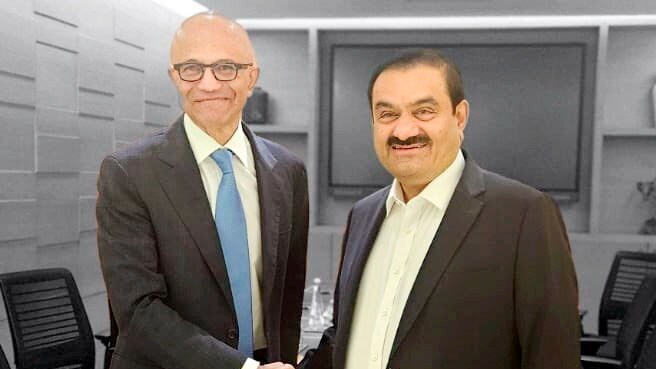 Adani Group's Chairman Gautam Adani on Wednesday had a strategic meeting with Microsoft CEO Satya Nadella, emphasising AI-driven partnerships as physical infrastructure merges with digital innovation.