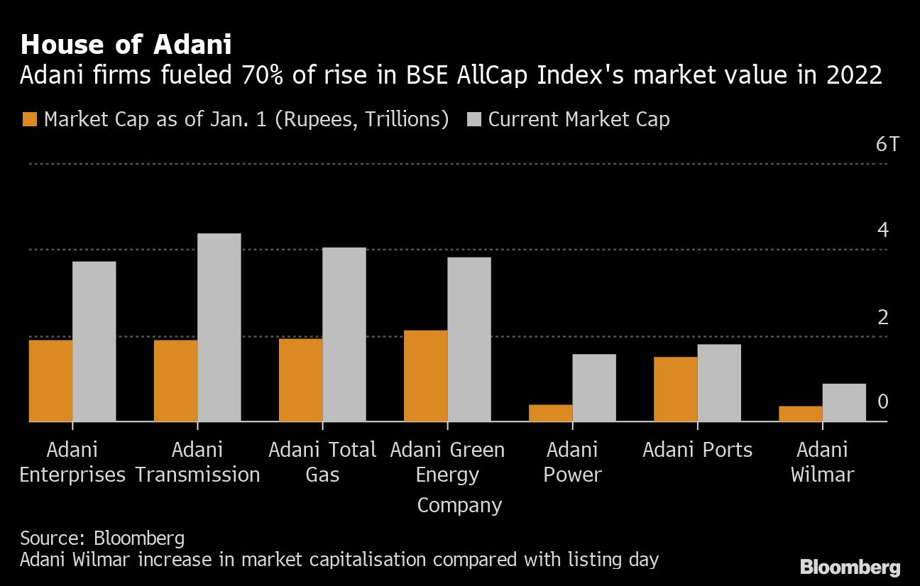 (Bloomberg) -- Adani Transmission Ltd. has blown past entrenched corporate giants to become India's 10th-largest listed firm by market value as part of a broader runaway rally in Adani Group stocks.