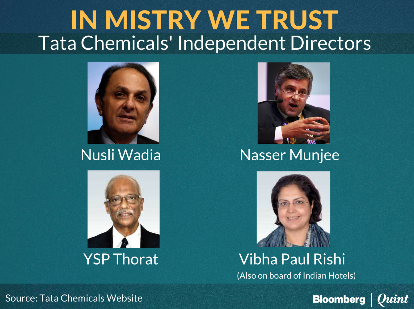 The independent directors of Tata Chemicals include Nusli N Wadia, Nasser Munjee, YSP Thorat and Vibha Paul Rishi. Rishi is also an independent director on the board of Indian Hotels.