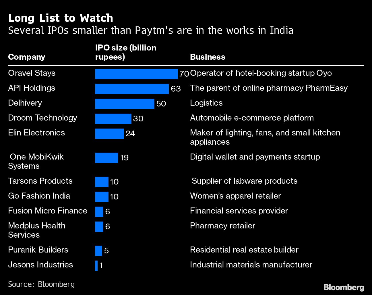 Planned smaller IPOs could have a harder time pricing shares if there is a reduced appetite for new listings. The shares of Paytm rival One MobiKwik Systems Ltd. have fallen about 40% in the so-called grey market.