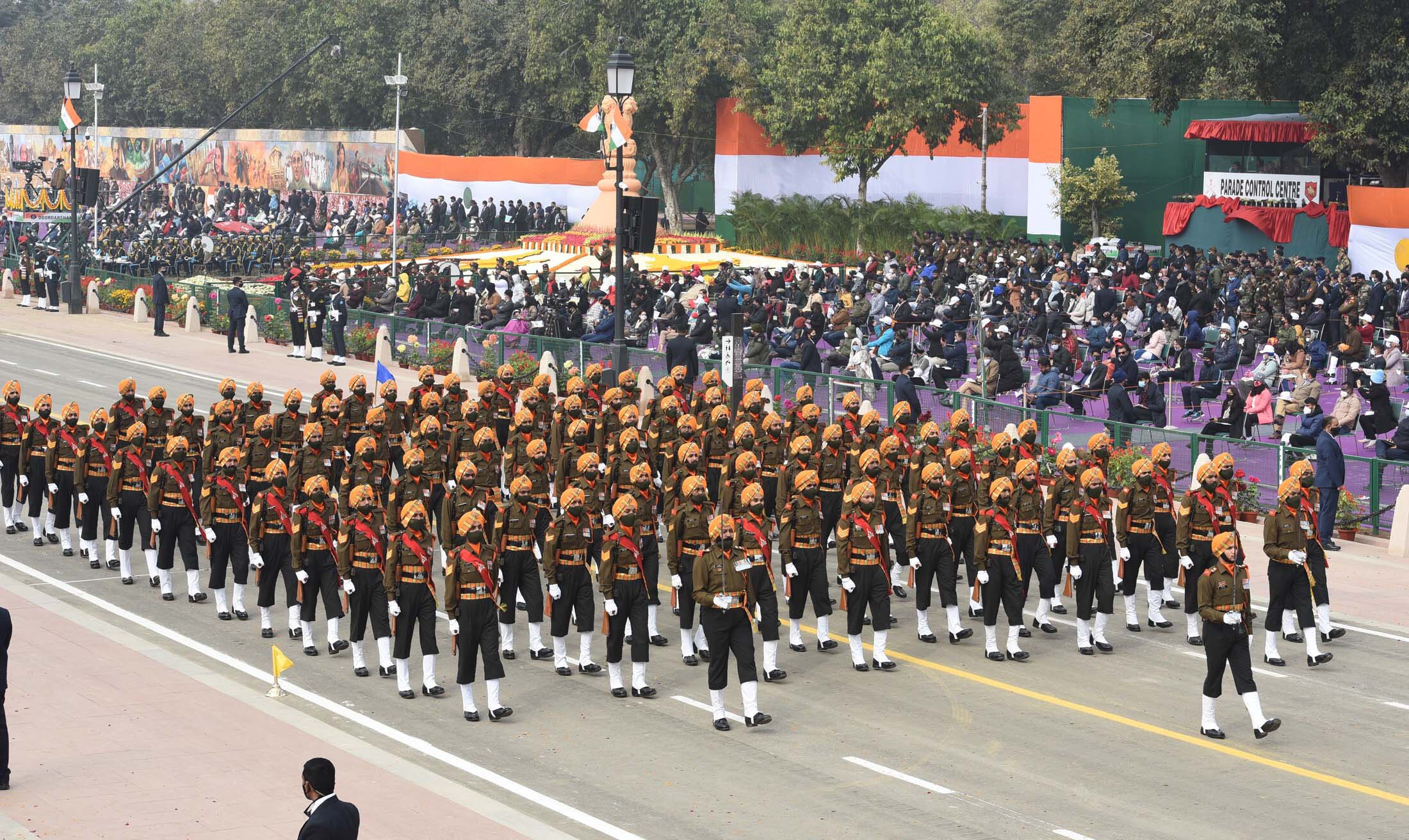 The Sikh Li Regiment Marching Contingent passes through the Rajpath, at the Republic Day Celebrations in New Delhi, on Jan. 26, 2022. (Photograph: PIB)