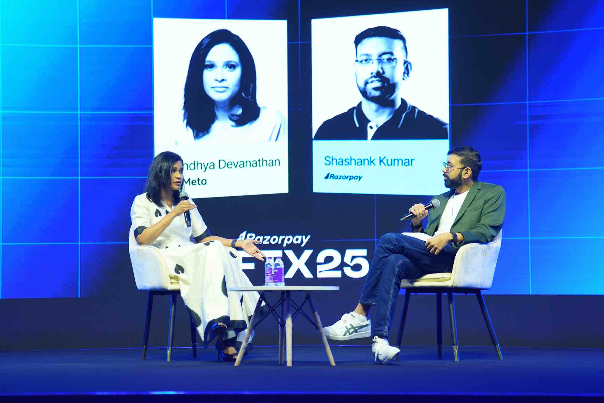 Shashank Kumar, MD & Co-founder, Razorpay, with Sandhya Devanathan, VP, Meta India, at FTX 2025. (Source: Razorpay)