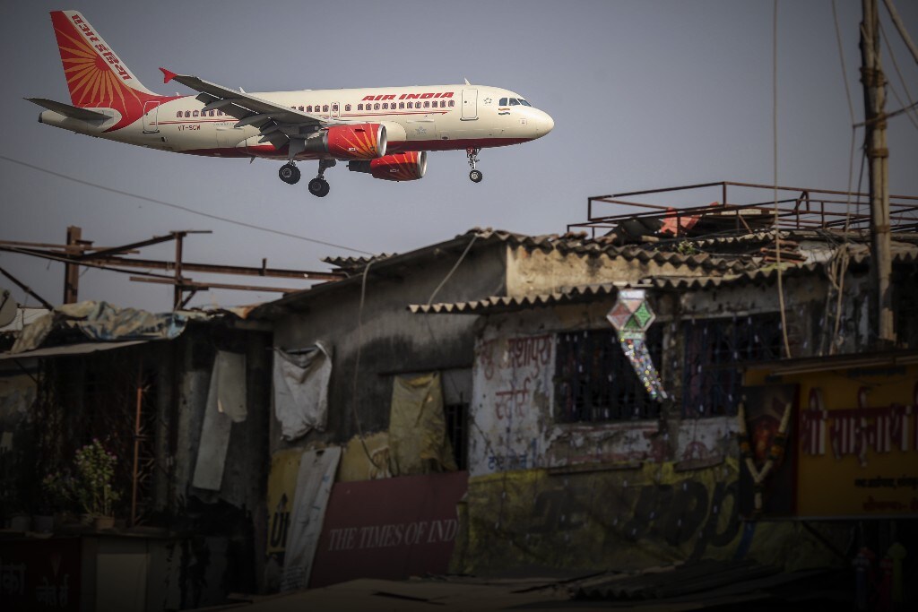 An Air India Ltd. aircraft prepares to land at Chhatrapati Shivaji International Airport in Mumbai, India (Photographer: Dhiraj Singh/Bloomberg)